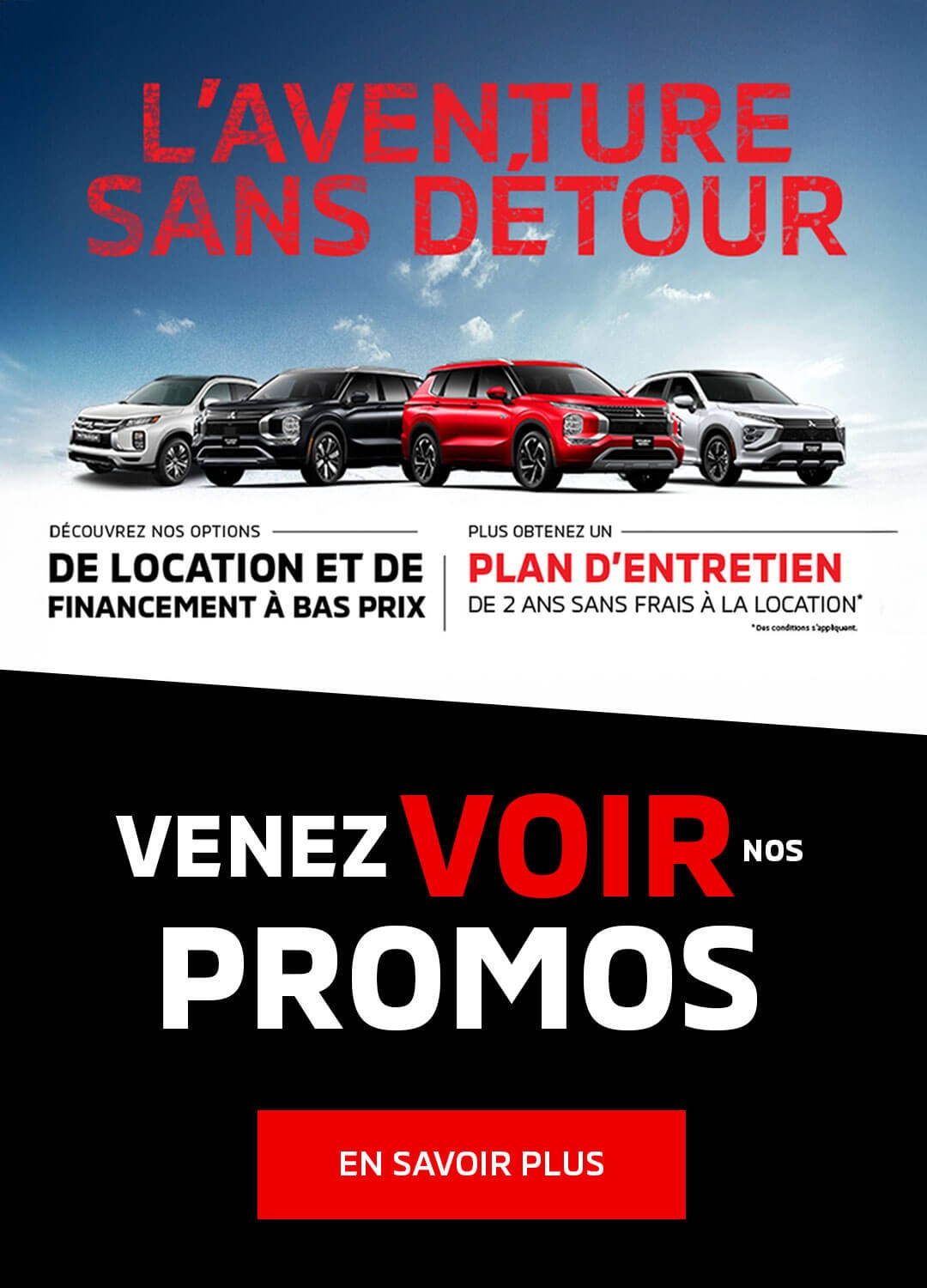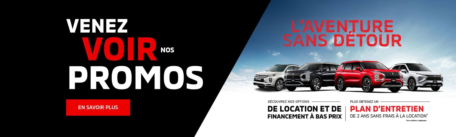 De plus, profitez de nos avantageuses promotions et de nos options de financement, ou encore de nos différents termes de location Mitsubishi!
