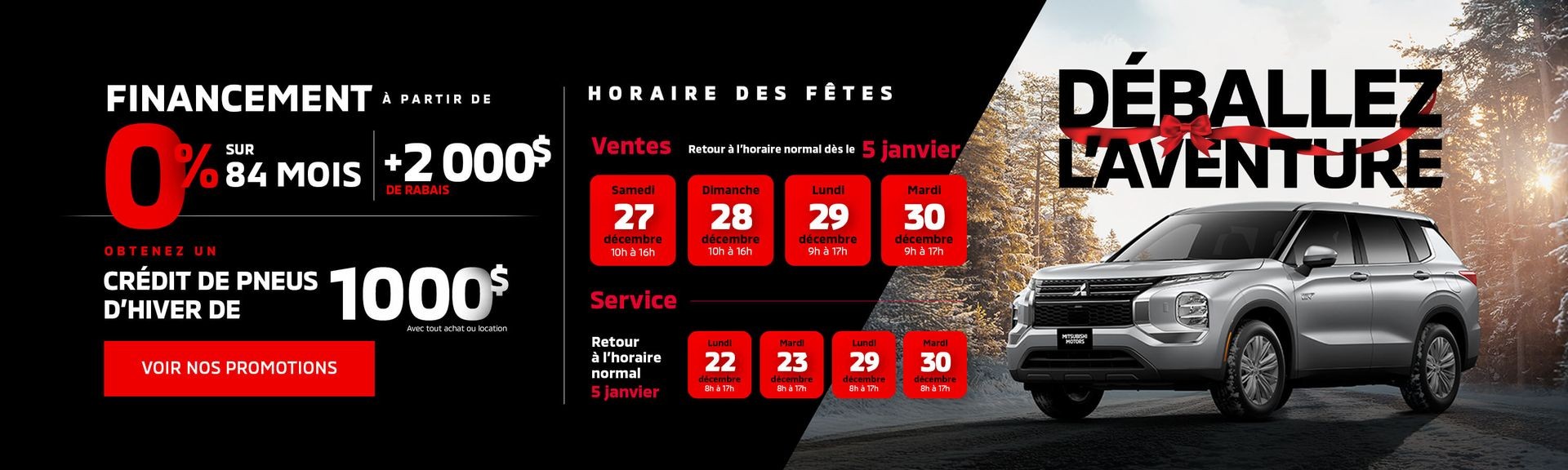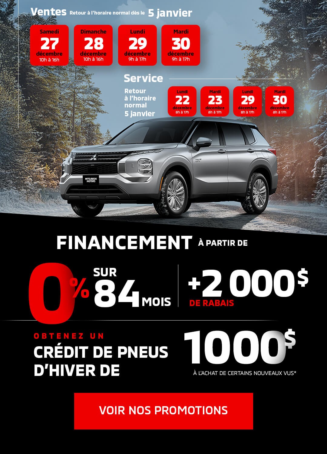 De plus, profitez de nos avantageuses promotions et de nos options de financement, ou encore de nos différents termes de location Mitsubishi!